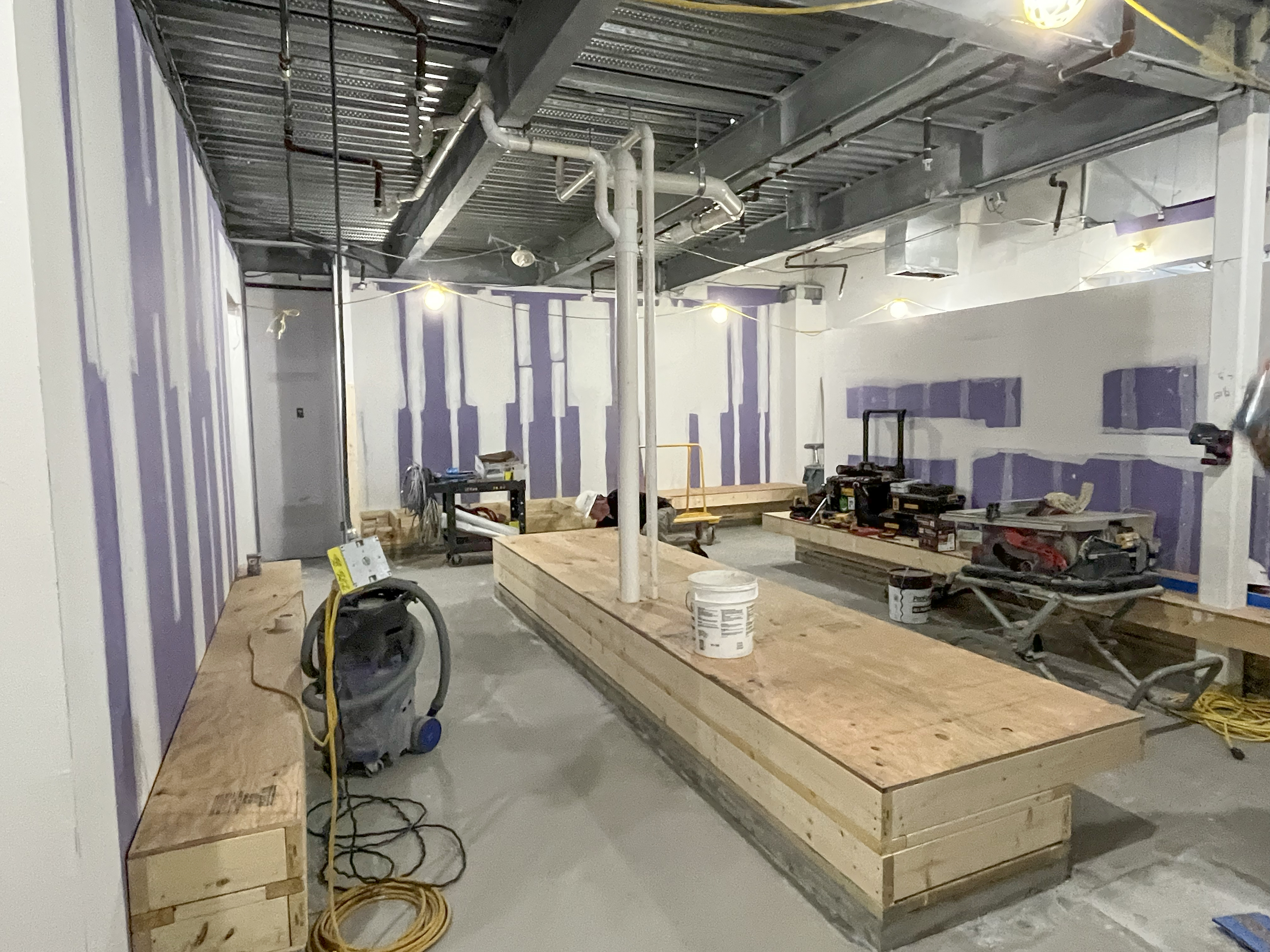Up next: the team will be prepping floors, installing new wall framing, installing locker base framing, installing new trench drains, installing ceiling plumbing and electrical.
