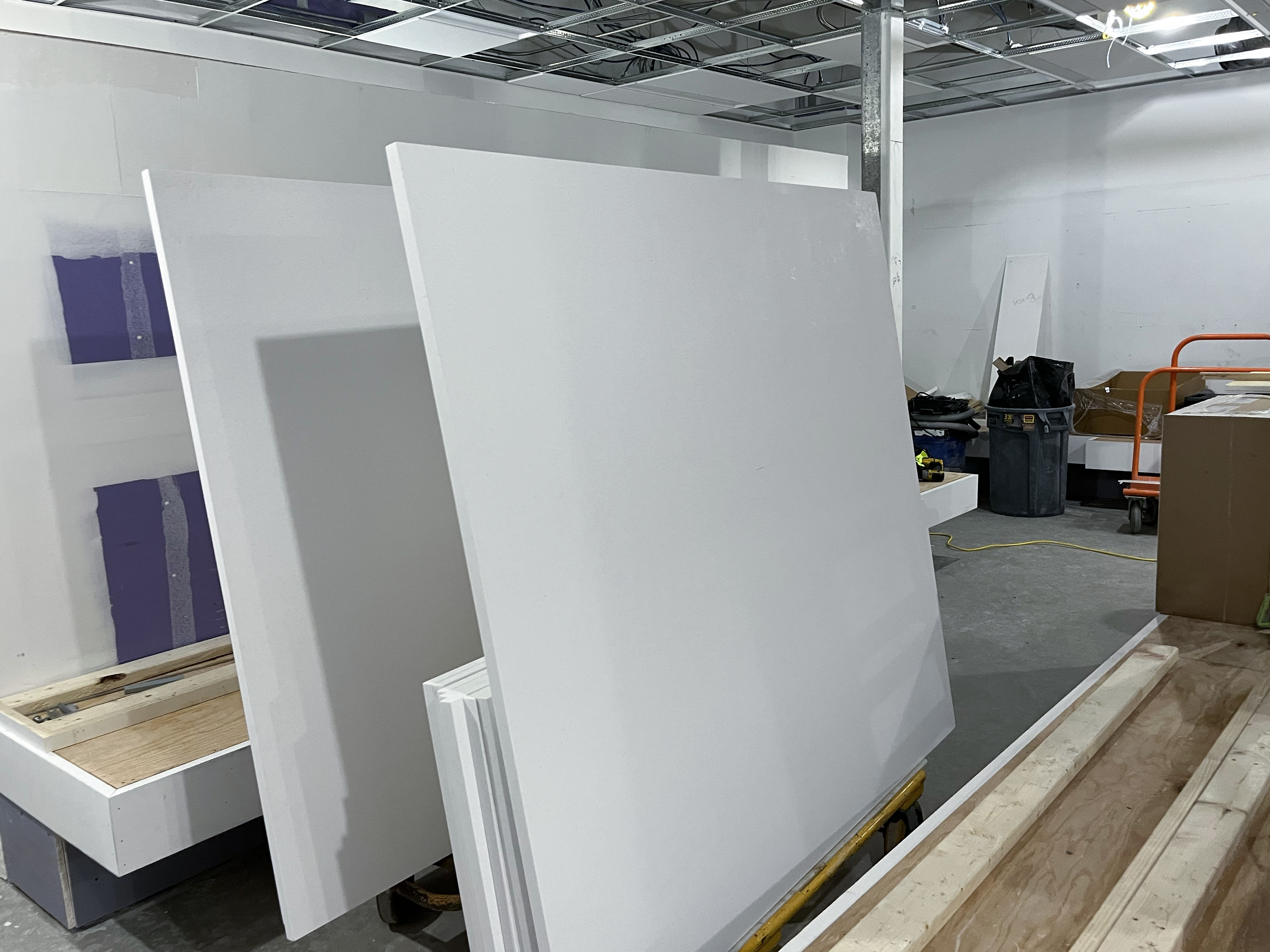 - Drywall installation is complete, and the space is really starting to come together.