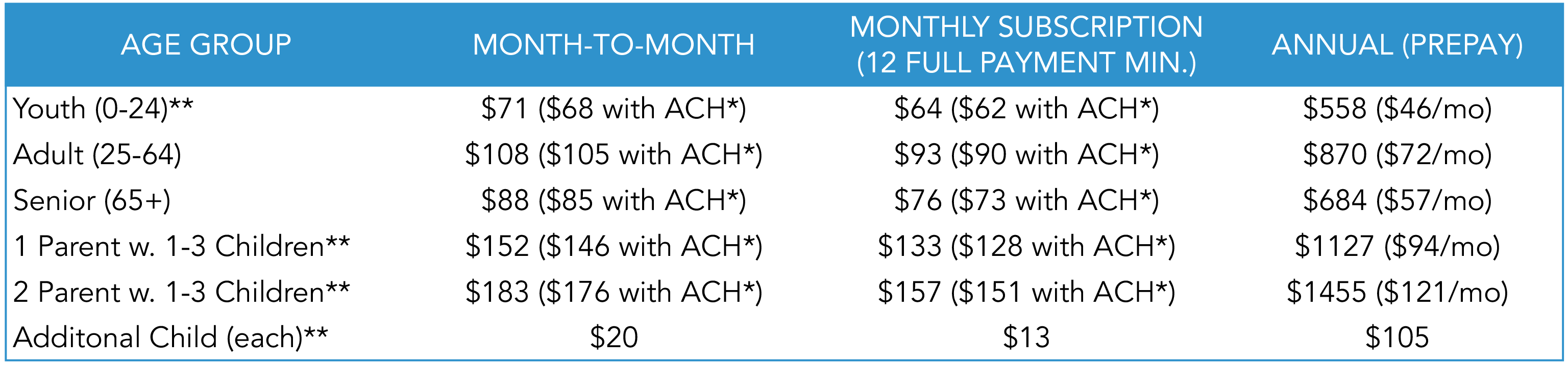 We have built our memberships to accommodate both single family households as well as two parent households. We also offer financial aid and reduced rate memberships to families that qualify.
